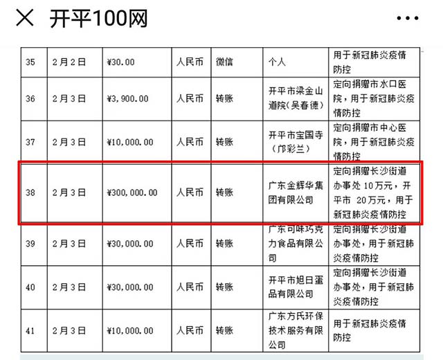 廣東金輝華集團有限公司疫情防控貢獻和復工復產工作略記 一、涓涓細流,匯成大海;點點星光,照亮銀河。今年春節,一場突如其來的新型冠狀病毒感染的肺炎疫情牽動著每一個人的心,更牽動著每一位金輝華人。新型冠狀病毒感染的肺炎疫情(簡稱“疫情”)發生后,在習近平總書記:生命重于泰山,疫情就是命令,防控就是責任的指引下,并在開平市新冠肺炎疫情防控指揮部的統一部署下,開平市紅十字會,慈善會共同發布了《開平市紅十字