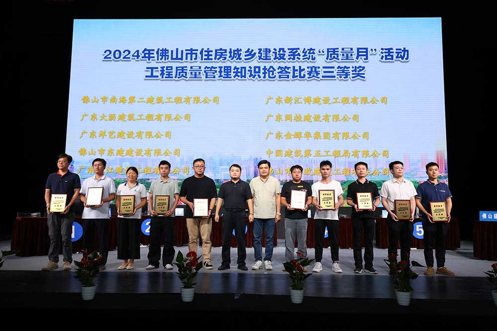 10月12日,由佛山市住房和城鄉(xiāng)建設局主辦的2024年佛山市住房城鄉(xiāng)建設系統“質量月”活動工程質量管理知識搶答比賽圓滿落幕。賽場上,金輝華集團代表隊與其他102家企業(yè)選手進行了筆試、搶答競賽等角逐。最終,隊員們憑借自身扎實的專業(yè)能力為集團公司贏得了競賽三等獎。