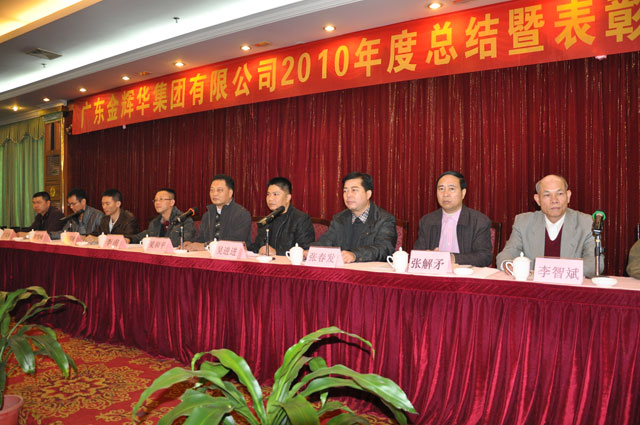 虎躍前程去,兔攜好運來。告別成績斐然的2010年,廣東金輝華集團有限公司迎來了充滿機遇的2011年。2011年1月29日下午,我集團公司在花園酒店宴會廳召開2010年度總結(jié)暨表彰大會,開平市常務副市長梁和平、開平市住房和城鄉(xiāng)建設局局長吳進進、開平市建設商會秘書長李智斌等上級領導以及李甫董事長、張國球總裁等集團公司領導參加了會議。2010年,是金輝華集團發(fā)展不平凡的一年,在市委、市政府的大力支持以及