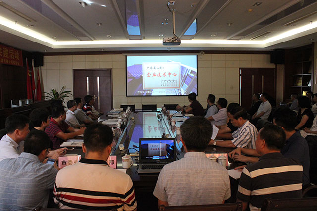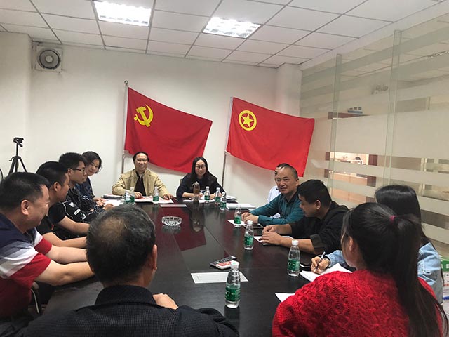 --記我司與江門市政研室結對共建座談會 為切實加強“兩新”黨建工作,鞏固“結對共建”成果,推動黨建創新發展,6月14日下午,江門市委秘書長、市委政研室主任、市委改革辦主任鄭文江,市委政研室副主任、黨支部書記李瀾一行到我司開展黨建專題調研,并召開黨建“結對共建”工作座談會。開平市委辦副主任曹偉平、長沙街道辦黨工委委員蘇國亮、我司董事局主席周珉興、黨委書記、副總裁張解矛、黨委副書記、副總裁盧文權、工