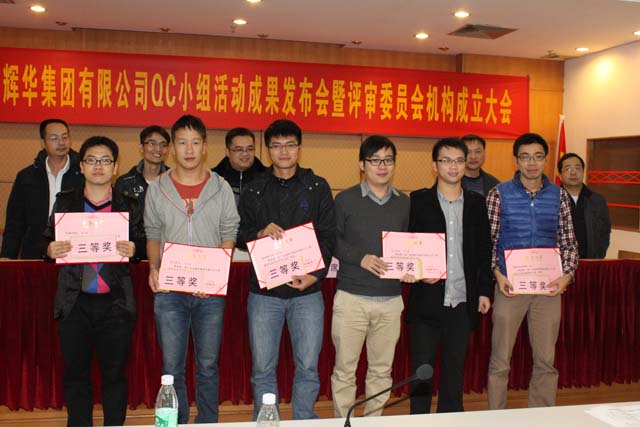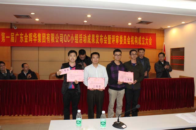 為進一步提升我集團公司工程建設質量管理水平和企業市場競爭力,激勵我司員工積極參與項目質量管理與創新活動,配合集團公司每年度的申報省(部)級、國家級質量管理小組稱號,并建立集團公司工程建設質量管理小組活動的長效機制,進而推動集團公司的工法課題的采集和編制工作。2012年12月18日,第一屆廣東金輝華集團有限公司QC成果活動發布會暨評審委員會機構成立大會在開平輝華樓會議室舉辦,總工室主任陳力夫、工程管理中心主任張解矛、副主任余志文、技術中心主任詹前進參加了發布會,本次發布會特邀廣東天竟建設有限公司總工盛克亞、項目經理張國勝、高級工程師樊代清三位QC質量管理專家擔任評委。