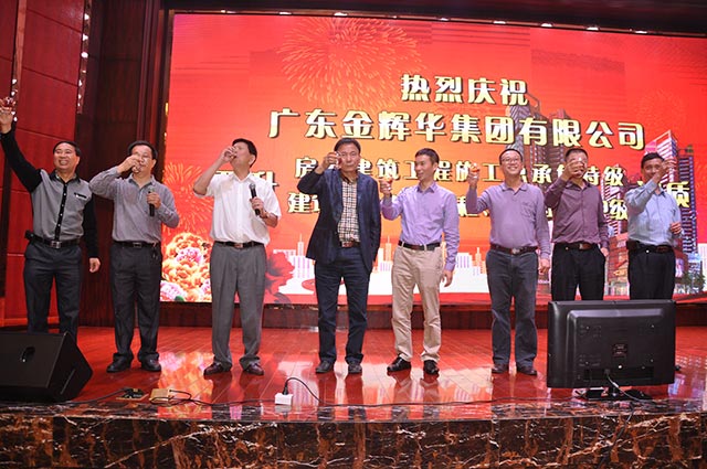 2014年11月22日,廣東金輝華集團有限公司召開我司晉升房屋建筑工程施工總承包特級和建筑行業(建筑工程、人防工程)甲級資質的慶祝會。