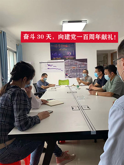 本工程自開工以來,面對工期緊張、新冠疫情沖擊、組織協調工程量大等諸多困難和挑戰,項目部全體人員迎難而上,防疫情,保復工,早晚輪休,挑燈夜戰,連夜值守,以最快速度推進項目建設。經過金輝華人的不懈努力,廣州“七一”主題燈光演繹于6月28日順利完成了彩排聯調,保證了慶祝建黨100周年燈光表演的精彩呈現。廣州琶洲西區24棟寫字樓外墻一齊亮起燈光,放映動畫,與廣大市民一起回顧百年黨史,共迎中國共產黨建黨100周年。