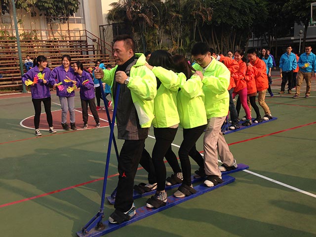 本次趣味運動會采取大學生村官和金輝華集團黨團員代表混合組隊的形式,組成4隊開展比賽。比賽項目有齊心協力、二人三足接力、搶凳仔、義氣踢毽和全心傳意。