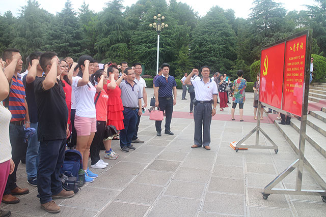 在劉少奇同志銅像前,全體黨員由黨委書記張解矛同志帶領黨員們重溫入黨誓詞。通過重溫,激活黨員的初心,使大家不忘黨員身份,不忘入黨時莊嚴許下的誓言,努力做到講政治、有信念,講規矩、有紀律,講道德、有品行,講奉獻、有作為;進一步提高黨員的黨性意識,堅定理想信念,立足本職工作崗位,開拓進取,為企業發展進步做出自己的貢獻。