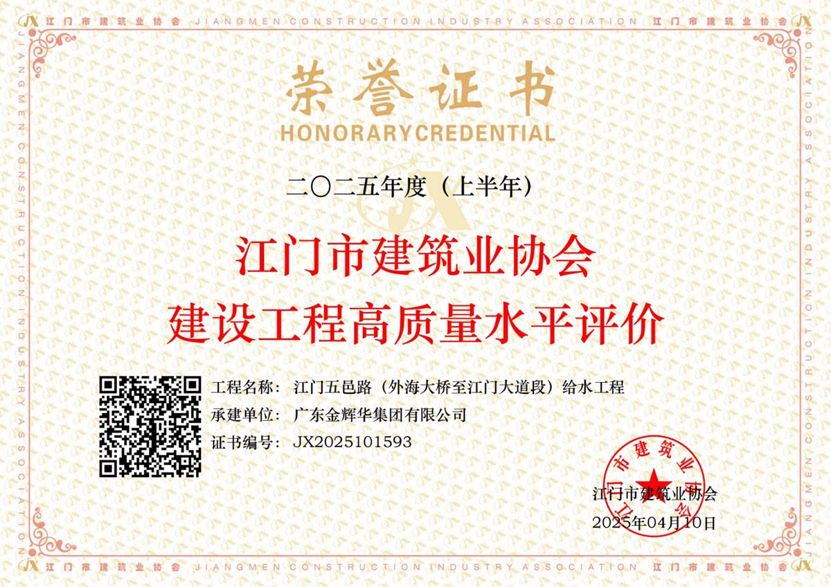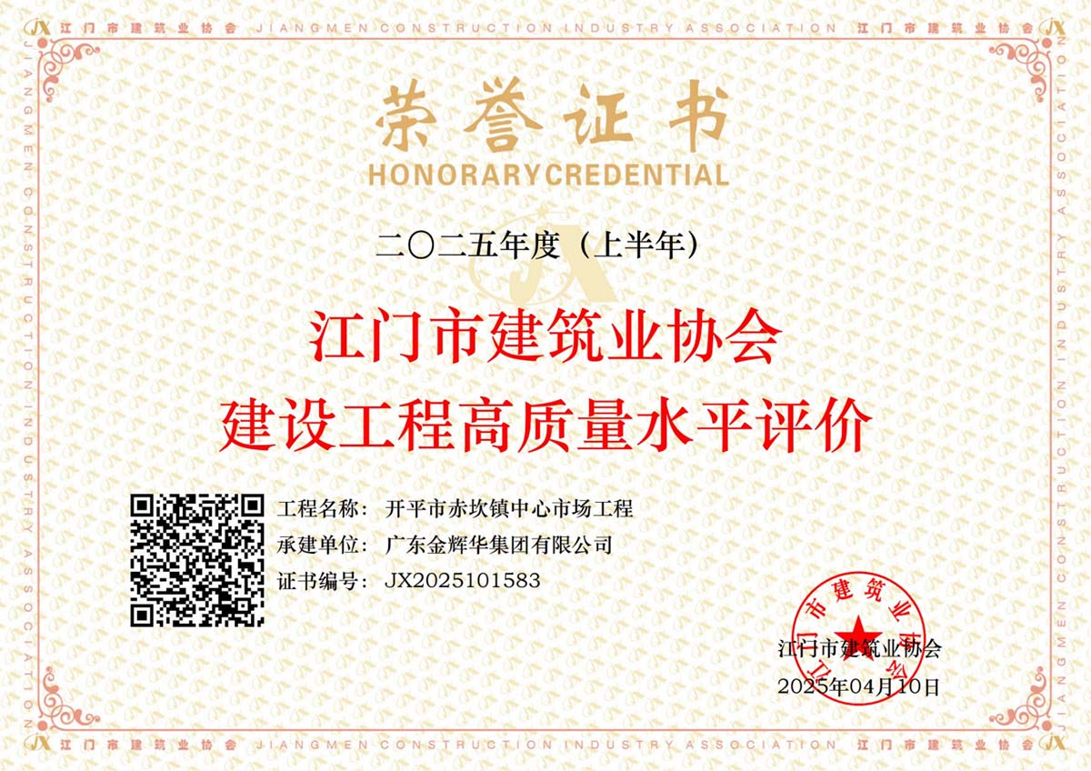 獲江門市建筑業協會建筑工程高質量水平評價2項
