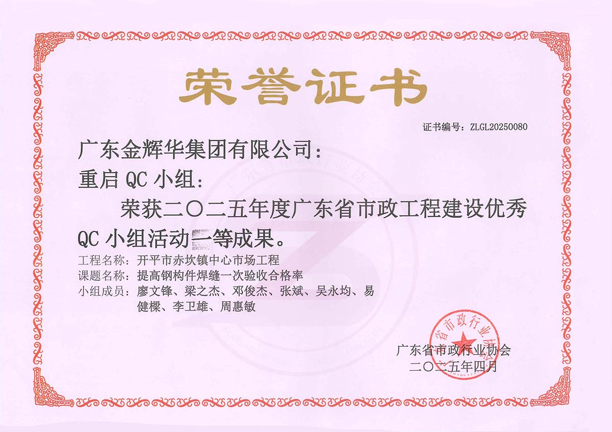 獲廣東省市政工程建設優秀QC小組活動成果3項