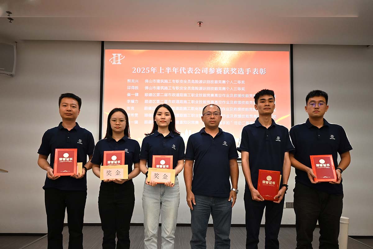 工程管理中心副總經理林慶堅、開平區域公司副總經理鄭國燦等領導出席此次活動。工程管理中心副總經理林慶堅為競賽作開場講話,對活動的舉辦表示熱烈祝賀,并勉勵各位選手在此次競賽中賽出水平、賽出風格。活動伊始,舉辦了2025年上半年代表公司參賽獲獎選手表彰儀式,對在佛山市危險源識別競賽、順德區高空作業及救援競賽等賽事中取得優異成績的個人與團隊進行嘉獎,鼓勵廣大員工以他們為榜樣,不斷提升專業能力,爭創一流。