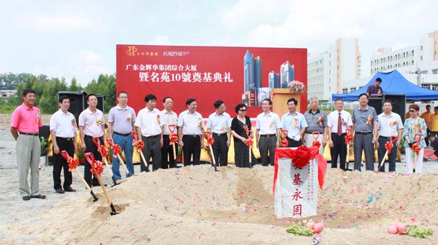 集團公司董事長李甫在奠基儀式上介紹說:“廣東金輝華集團綜合大廈是集團公司省級技術中心的辦公樓和專家樓,它的建設是開平市委、市政府提出的打造開平市城市標志性建筑的一項重要舉措,是金輝華集團爭創(chuàng)省級新技術應用示范工程及國家級優(yōu)質工程的項目。在市委市政府及有關主管部門的大力支持和關懷下,該項目計劃在兩年內竣工并投入使用。”